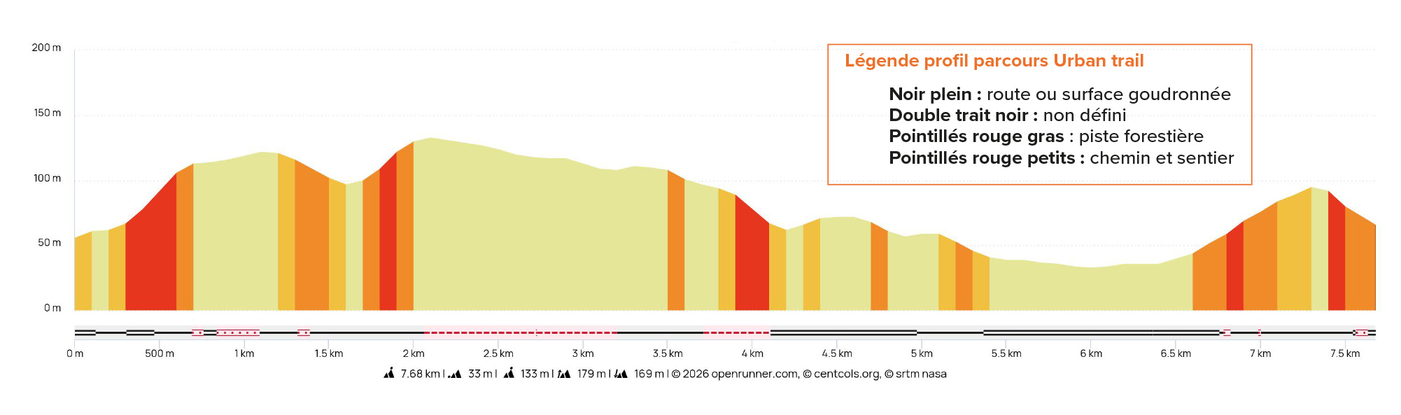 Profil altimétrique d’une boucle du 2e Urban trail