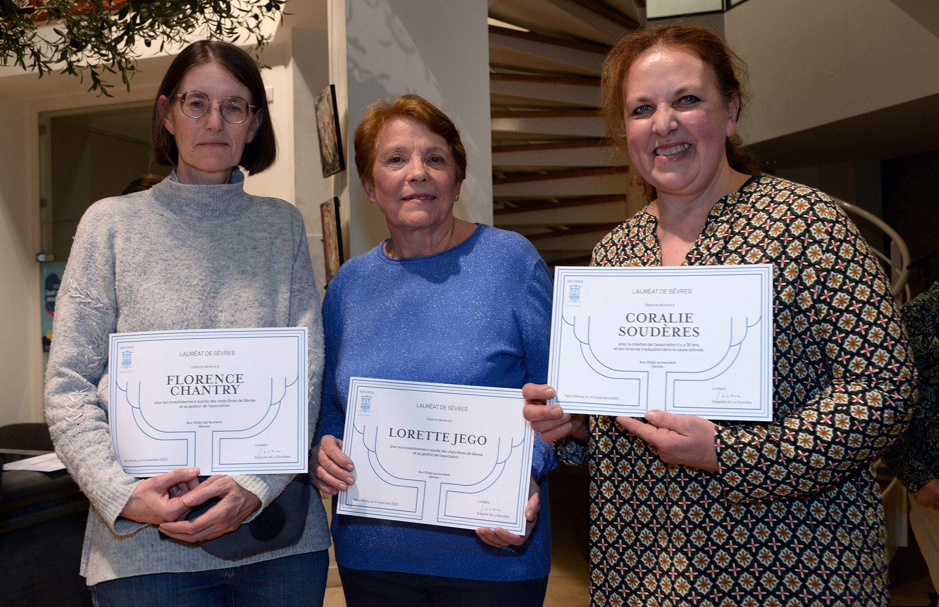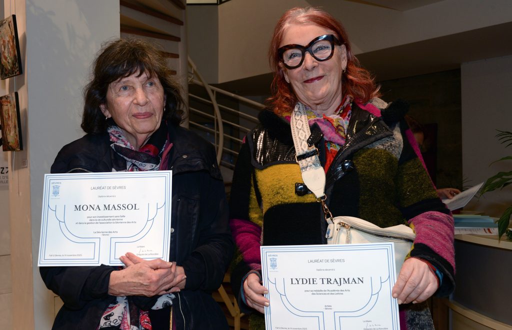 • L’artiste Lydie Trajman a été récompensée pour sa médaille de l’Académie des arts, des sciences et des lettres et • Mona Massol, présidente de l’association La Sévrienne des Arts pour son engagement dans la vie culturelle et la gestion de l’association.