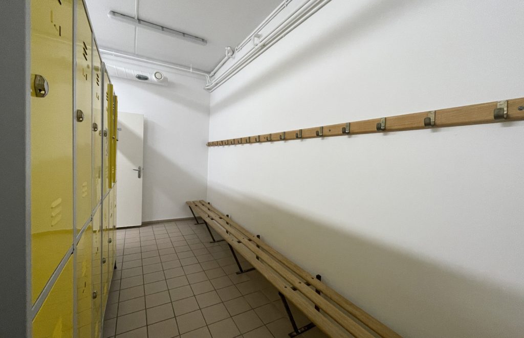 À l’automne 2025, les travaux se sont poursuivis avec la remise en peinture des vestiaires et douches du niveau -1, ainsi que des portes des sanitaires, qui présentaient des signes de dégradation.